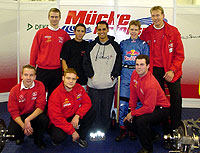stehend) 2004 in der Formel BMW für Mücke Motorsport fährt. Renn-Ingenieur